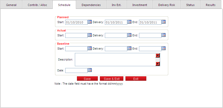 | Delivery | Baseline Delivery date. |