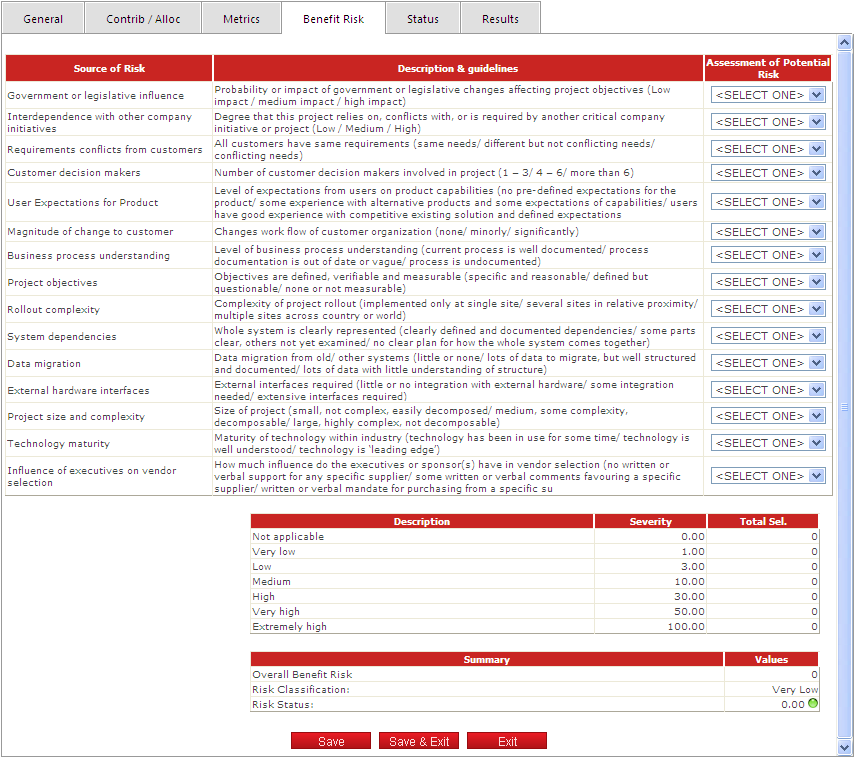 Step 2: Assign Benefit Risk values